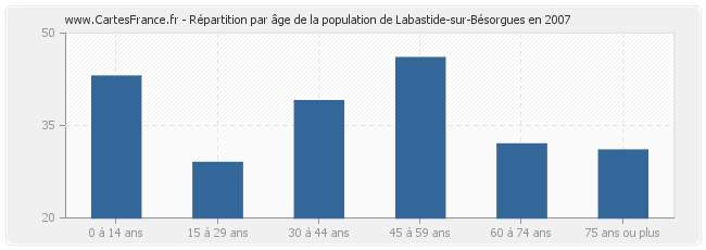 - Population de Labastide-sur-Bésorgues de 45 à 59 ans : 46 habitants