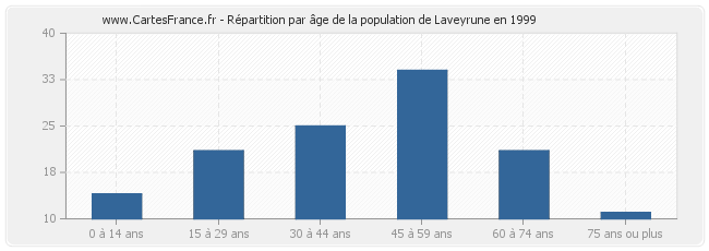 - Population de Laveyrune de 45 à 59 ans : 34 habitants