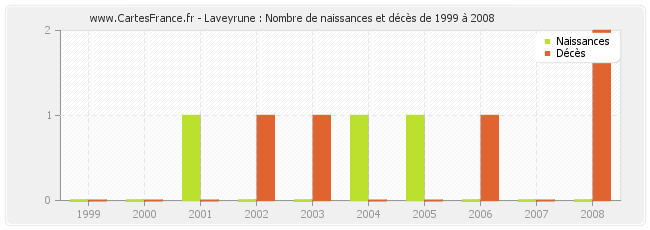 - Laveyrune en 2008 : 0 naissances et 2 décès