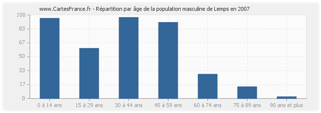 - Hommes de 0 à 14 ans habitant Lemps : 96