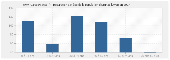 - Population d'Orgnac-l'Aven de 30 à 44 ans : 122 habitants