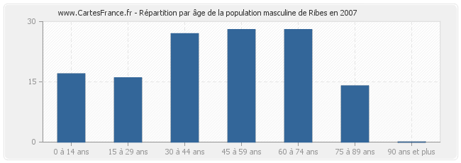 - Hommes de 45 à 59 ans habitant Ribes : 28