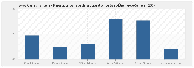 - Population de Saint-Étienne-de-Serre de 75 ans ou plus : 26 habitants