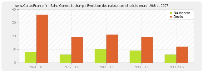 Saint-Genest-Lachamp : évolution des naissances et décès de 1968 à 2007