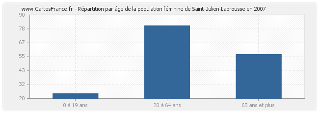 Répartition de la population féminine de Saint-Julien-Labrousse par âge en 2007 :