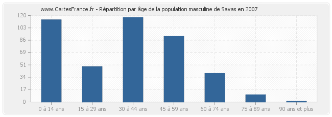 - Hommes de 0 à 14 ans habitant Savas : 114
