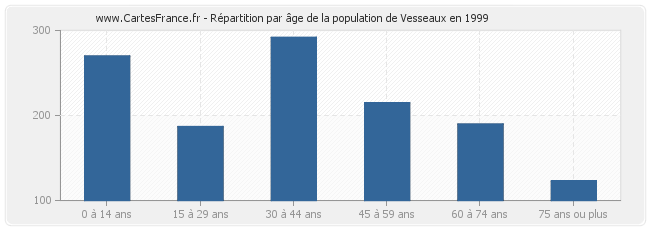 - Population de Vesseaux de 30 à 44 ans : 292 habitants