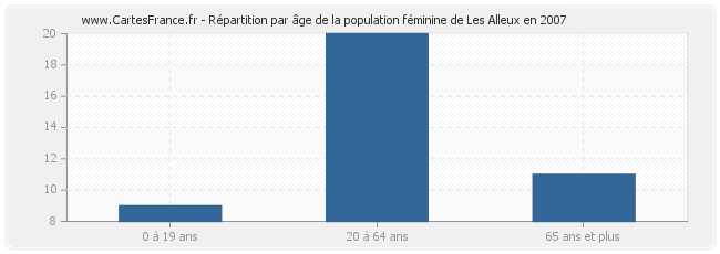 - Femmes de 20 à 64 ans habitant Les Alleux : 20