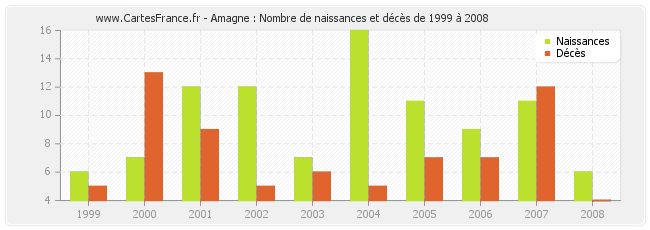 Amagne : évolution des naissances et décès de 1968 à 2007