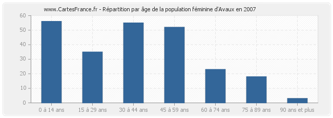 Répartition de la population féminine d'Avaux par âge en 2007 :
