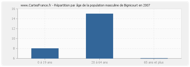 Répartition de la population masculine de Bignicourt par âge en 2007 :
