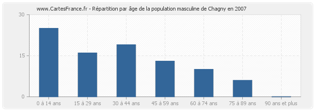 - Hommes de 0 à 14 ans habitant Chagny : 25