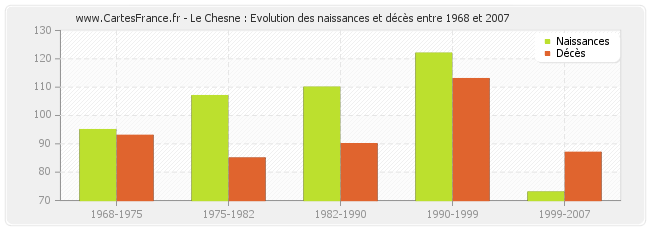 Le Chesne : évolution des naissances et décès de 1968 à 2007