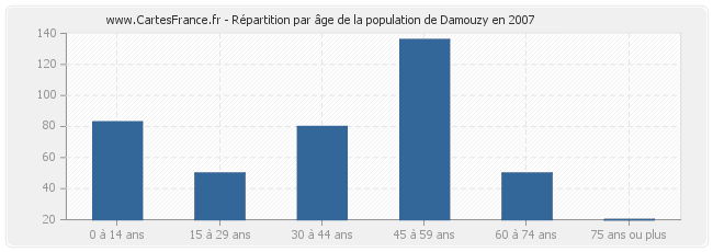 - Population de Damouzy de 45 à 59 ans : 136 habitants