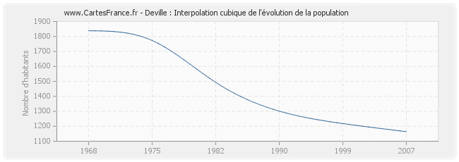 Cette courbe reprend l'historique de la population de Deville de 1968 à 2007 en interpolation cubique. Ceci permet d'obtenir plus précisément la population de la commune de Deville les années ou aucun recensement n'a été effectué.