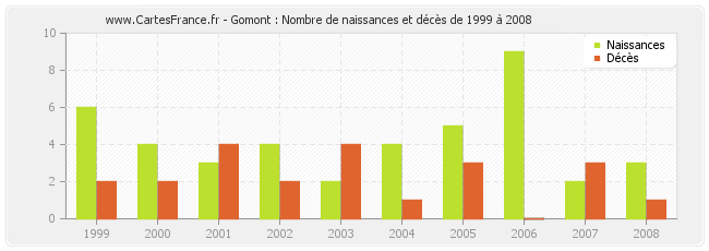 Gomont : évolution des naissances et décès de 1968 à 2007