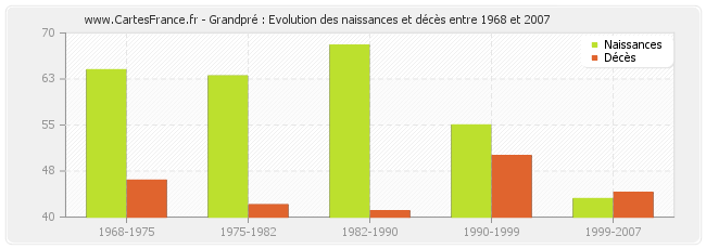 Grandpré : évolution des naissances et décès de 1968 à 2007