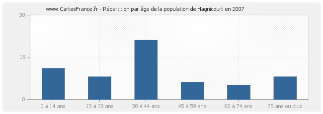 - Population de Hagnicourt de 30 à 44 ans : 11 habitants