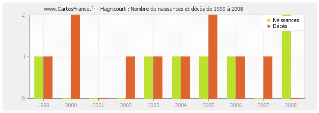 - Hagnicourt en 2008 : 2 naissances et 0 décès