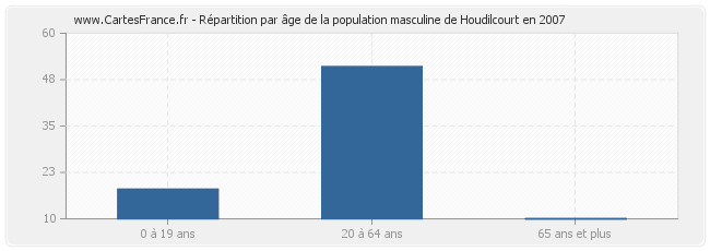 Répartition de la population masculine de Houdilcourt par âge en 2007 :