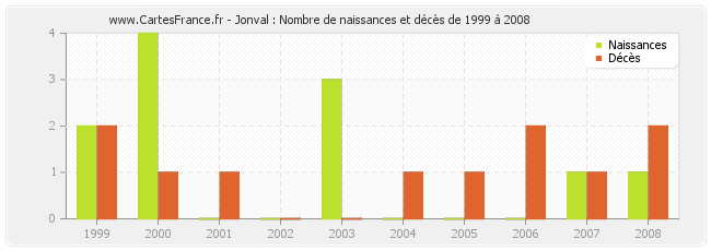 Jonval : évolution des naissances et décès de 1968 à 2007