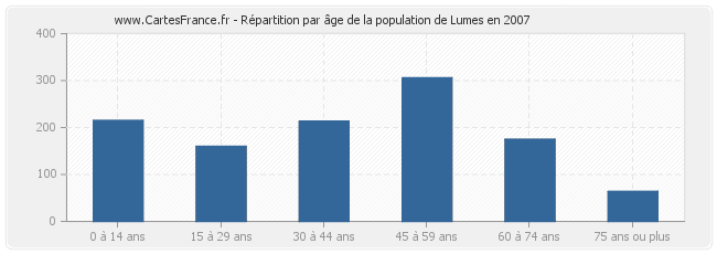 - Population de Lumes de 45 à 59 ans : 306 habitants