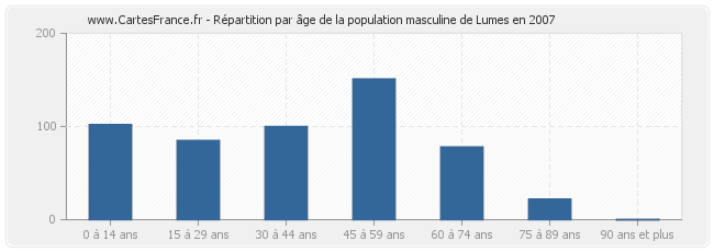 Répartition de la population masculine de Lumes par âge en 2007 :