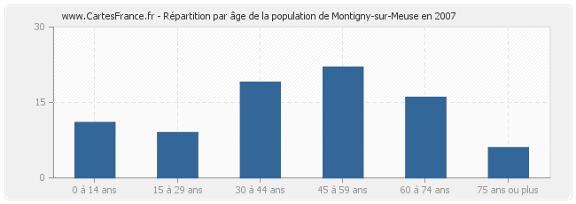 - Population de Montigny-sur-Meuse de 45 à 59 ans : 22 habitants