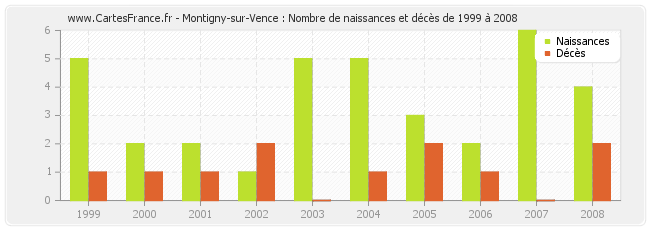 Montigny-sur-Vence : naissances et décès de 1999 à 2008