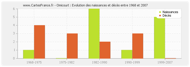 Omicourt : évolution des naissances et décès de 1968 à 2007
