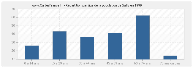 - Population de Sailly de 60 à 74 ans : 43 habitants