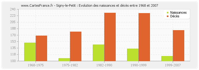 Signy-le-Petit : évolution des naissances et décès de 1968 à 2007