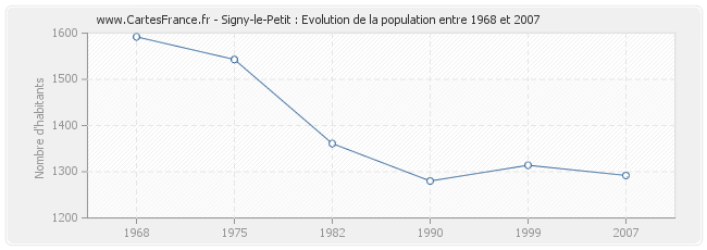 La population de Signy-le-Petit était de 1 292 habitants en 2007, 1 314 habitants en 1999, 1 280 habitants en 1990, 1 361 habitants en 1982, 1 543 habitants en 1975 et 1 592 habitants en 1968.