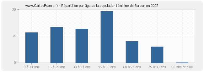 - Femmes de 45 à 59 ans habitant Sorbon : 29