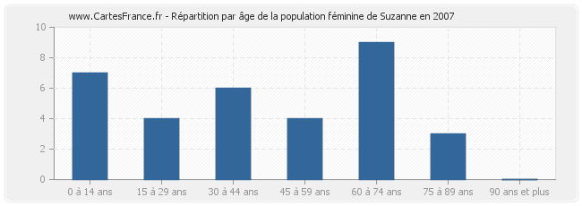 - Femmes de 60 à 74 ans habitant Suzanne : 9