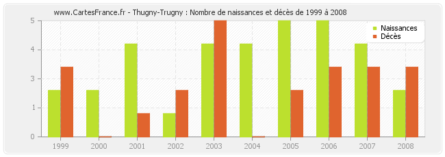 Thugny-Trugny : naissances et décès de 1999 à 2008