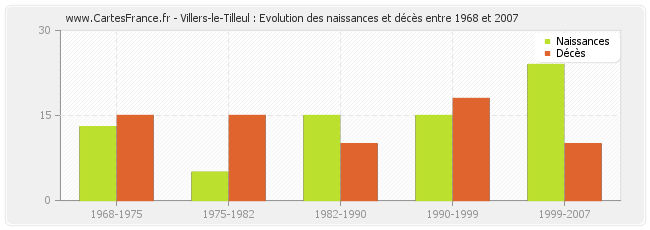 Villers-le-Tilleul : évolution des naissances et décès de 1968 à 2007