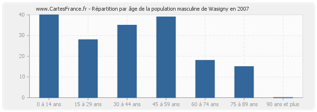 - Hommes de 0 à 14 ans habitant Wasigny : 40