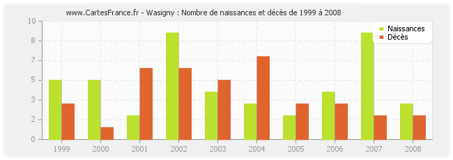 Wasigny : naissances et décès de 1999 à 2008