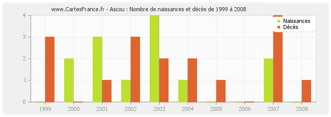 Ascou : évolution des naissances et décès de 1968 à 2007