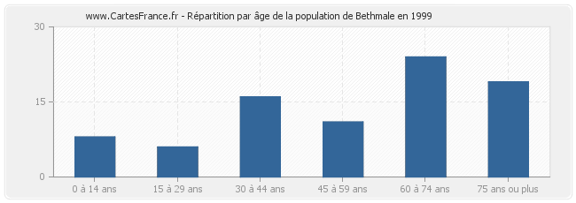 - Population de Bethmale de 60 à 74 ans : 24 habitants