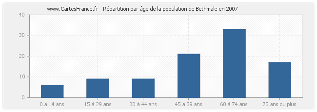 - Population de Bethmale de 60 à 74 ans : 33 habitants