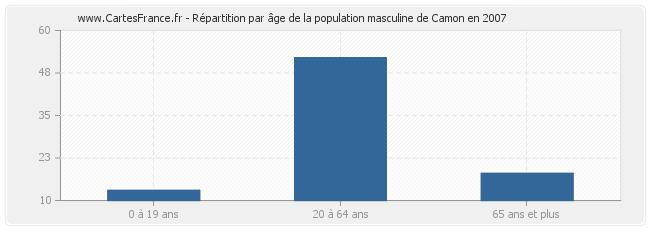 - Hommes de 0 à 19 ans habitant Camon : 13