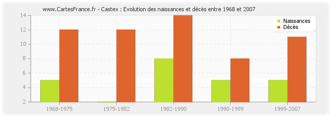 La population de Castex était de 93 habitants en 2007, 73 habitants en 1999, 76 habitants en 1990, 97 habitants en 1982, 98 habitants en 1975 et 108 habitants en 1968.