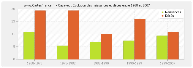 Cazavet : évolution des naissances et décès de 1968 à 2007