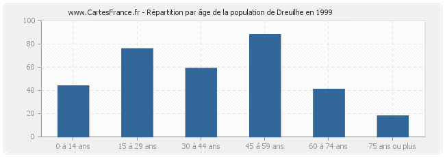 - Population de Dreuilhe de 45 à 59 ans : 88 habitants