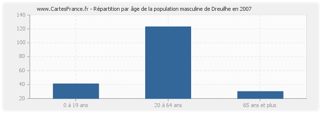 - Hommes de 20 à 64 ans habitant Dreuilhe : 123