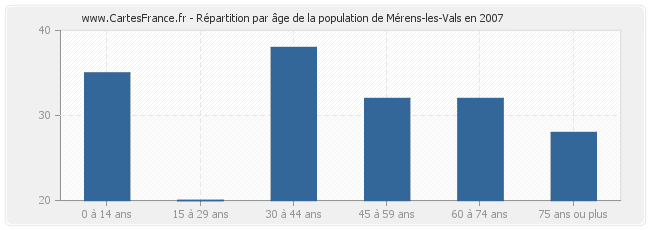 - Population de Mérens-les-Vals de 30 à 44 ans : 35 habitants