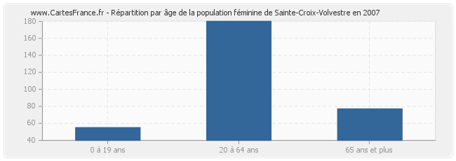 Répartition de la population féminine de Sainte-Croix-Volvestre par âge en 2007 :