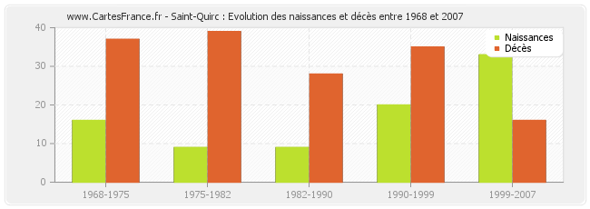Saint-Quirc : évolution des naissances et décès de 1968 à 2007